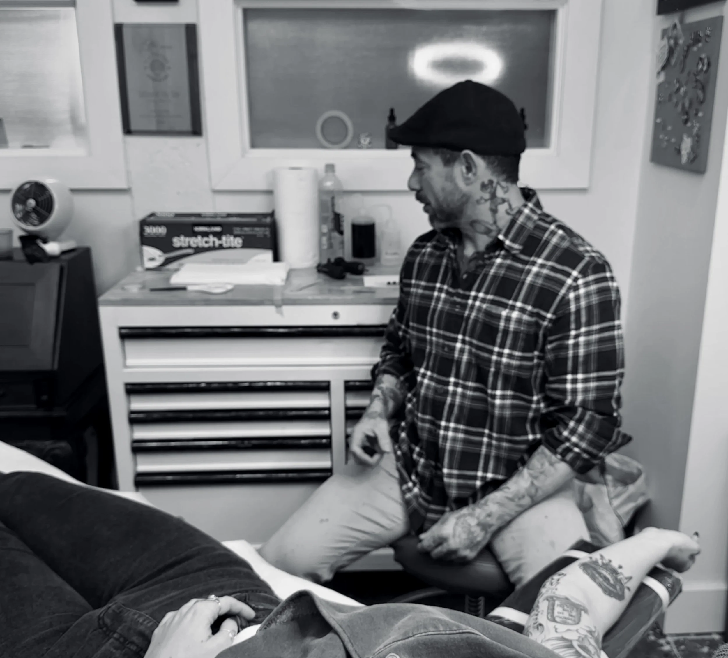 Tattooing, drawing, and quiet conversation.